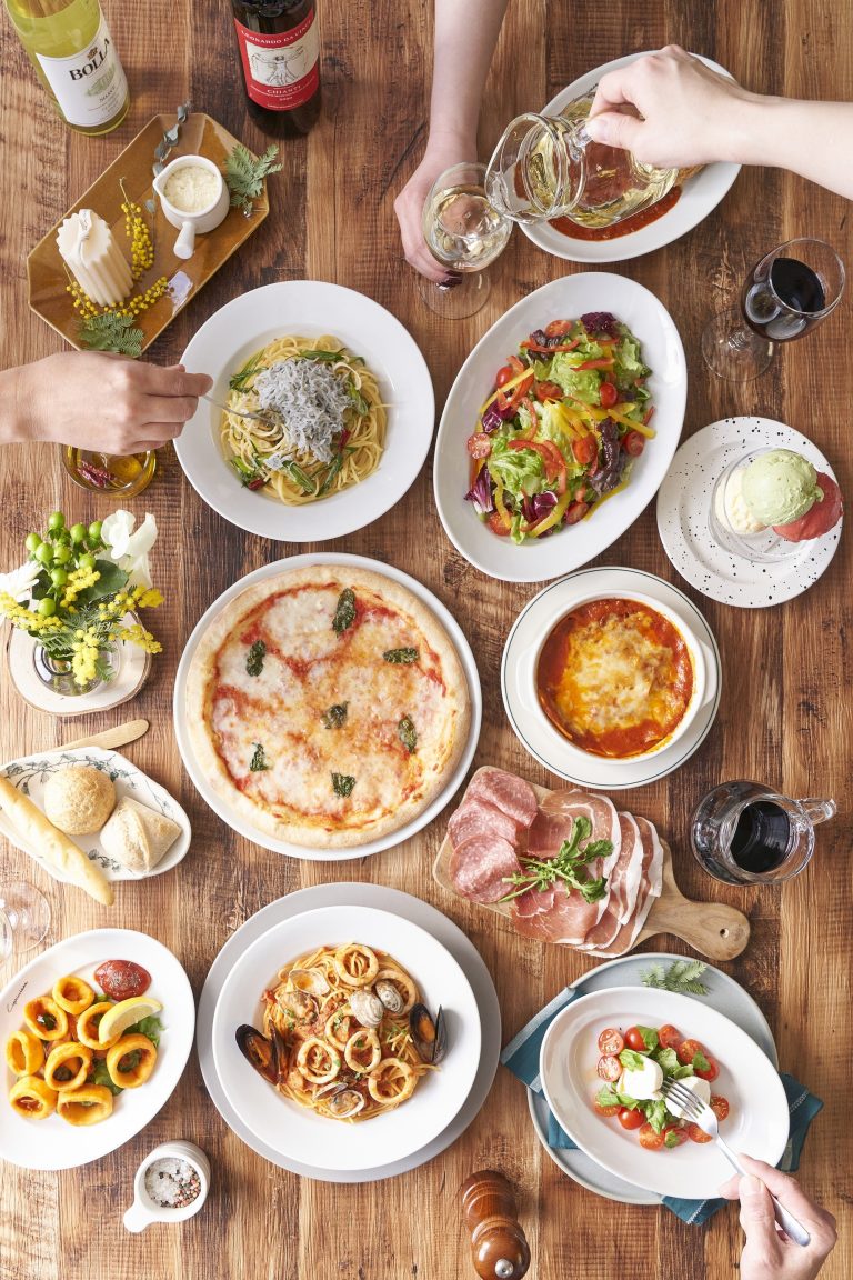 ピッツアやスパゲティはワインやサイドメニューと一緒に楽しめば、最高のご褒美タイムに!
